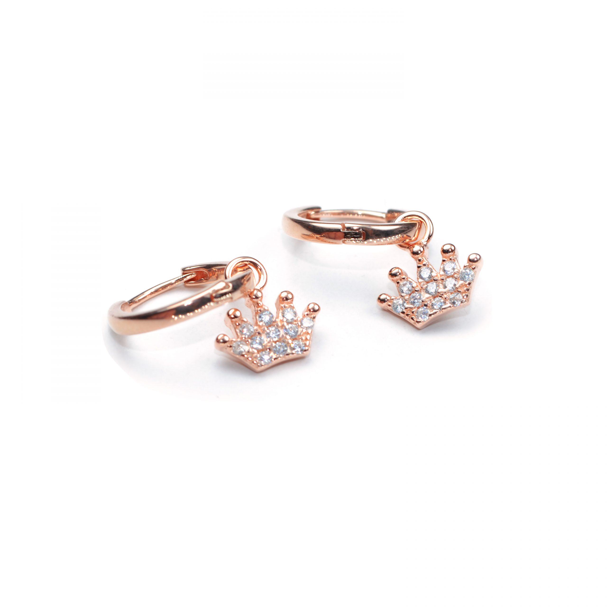 Roze srebro minđuše u obliku krune sa cirkonima